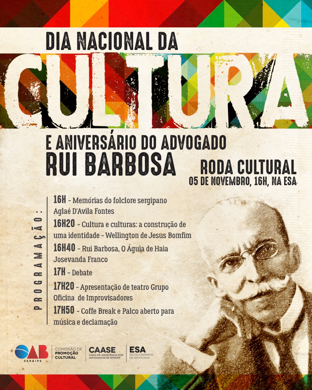 A união entre expressões artísticas e a valorização da cultura do Estado será o ensejo da roda cultural promovida, no dia 5 de novembro, pela Ordem dos Advogados do Brasil, em Sergipe. O intuito é celebrar o Dia Nacional da Cultura e o aniversário do jurista e escritor, Rui Barbosa. A iniciativa é realizada pela … Read more