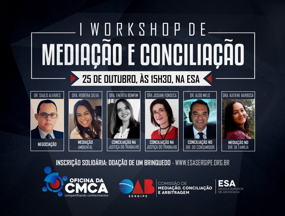 Na próxima semana, a programação da Ordem dos Advogados do Brasil, em Sergipe, traz como destaque o I Workshop de Mediação e Conciliação. O evento ocorrerá no dia 25 de outubro e abordará temas como mediação familiar, negociação, conciliação na Justiça de Trabalho, etc. Promovido através da Comissão de Conciliação, Mediação e Arbitragem da OAB/SE … Read more