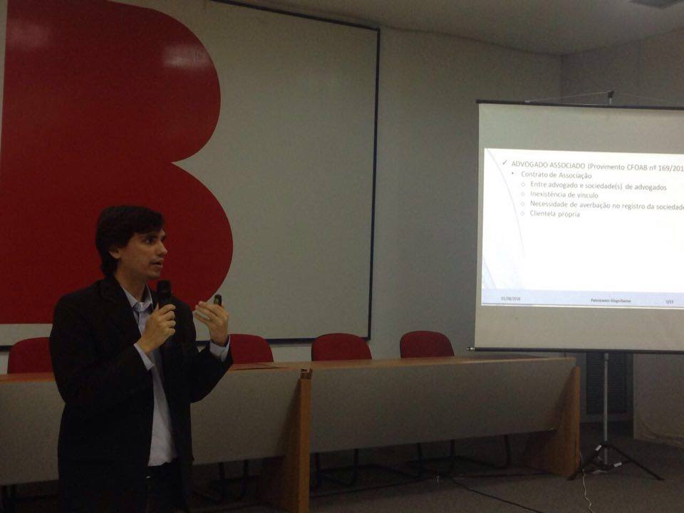 Em seguida, o coordenador científico de Direito Empresarial da ESA, Diego Barros, colocou em discussão as possibilidades de atuação da advocacia privada (advogado autônomo, empregado ou associado) e o registro e as regras aplicadas às sociedades de advogados. Para Diego, “o curso é vital para o profissional que está dando o primeiro passo em direção à carreira”.