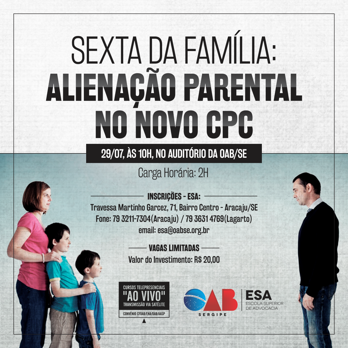 No dia 29 de julho, o mestre em Direito pela Universidade de Santa Cruz do Sul, Conrado Paulino da Rosa, abordará os abusos psicológicos do genitor à criança no Novo Código. Com carga horária de duas horas, o curso “Sexta da Família: Alienação Parental no Novo CPC”, para os advogados, outros profissionais e estudantes de Direito, tem o valor de R$ 20,00.